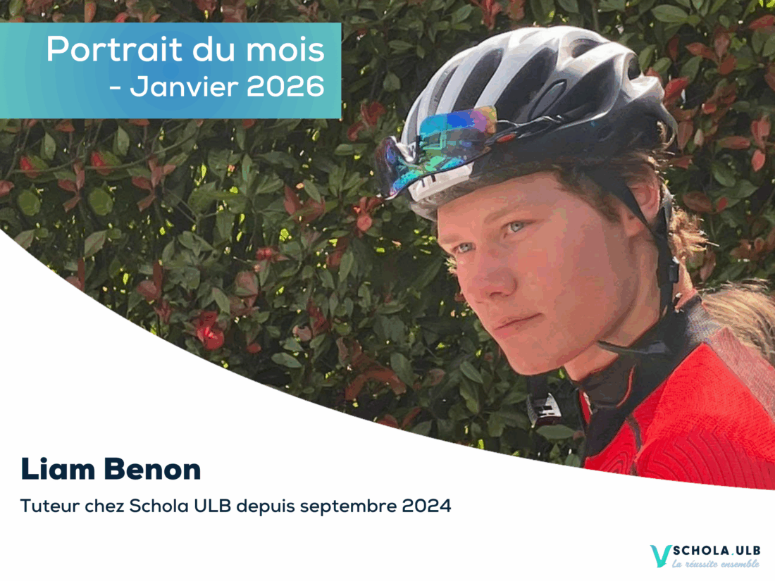 Liam : « Je suis tuteur chez Schola ULB depuis septembre 2024 et je donne des tutorats de mathématiques et de physique. »