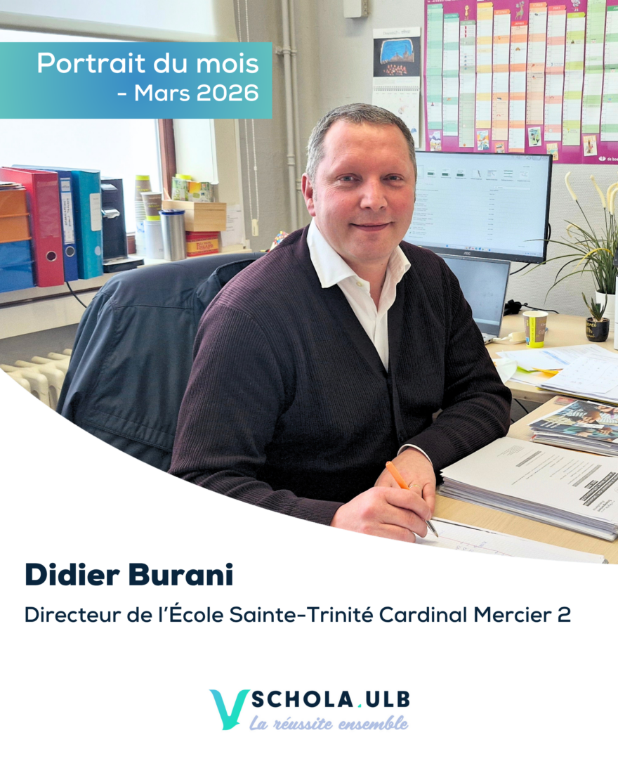Didier Burani est directeur de l’École Sainte-Trinité Cardinal Mercier 2 à Ixelles où il y coordonne également les séances de tutorat organisées en partenariat avec Schola ULB. Convaincu de l’importance d’ouvrir l’école sur son environnement, il voit dans ce partenariat une véritable opportunité de renforcer une dynamique collaborative au service des élèves. Il a accepté de nous partager son regard sur cette collaboration porteuse de sens et son impact concret au sein de son établissement. Voici son interview :